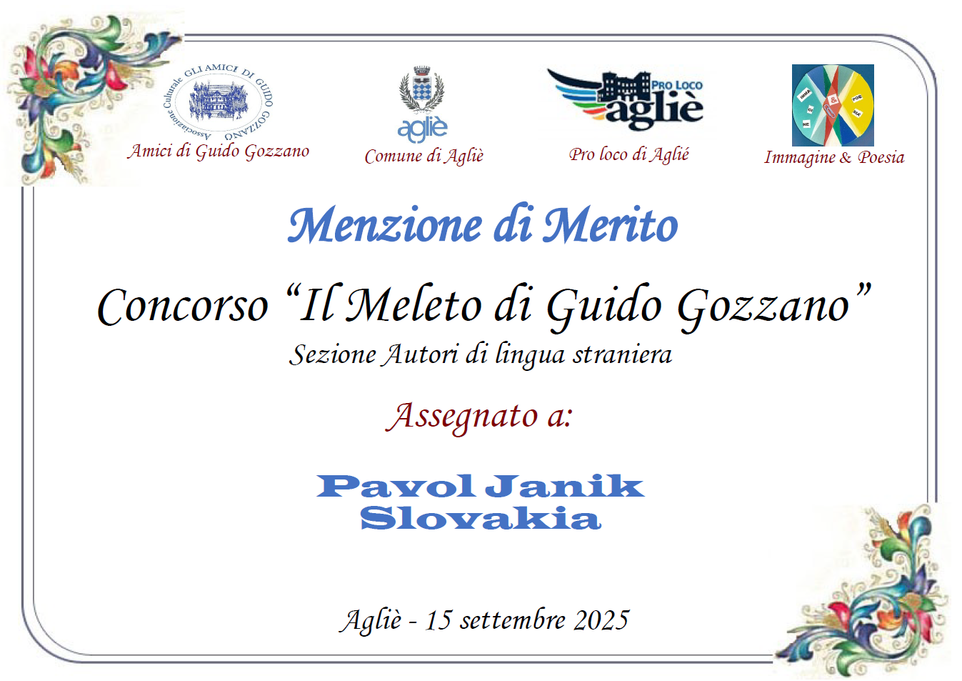 Honorable Mention "Il Meleto di Guido Gozzano" Competition | Awarded to PAVOL JANIK (SLOVAKIA) | ITALY |