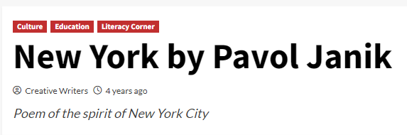 PAVOL JANIK | POEM NEW YORK in 19 LANGUAGES | Published by BABELMATRIX: Babel Web Anthology – the Multilingual Literature Portal |